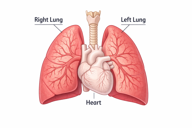The lungs sit inside the chest and surround the heart.